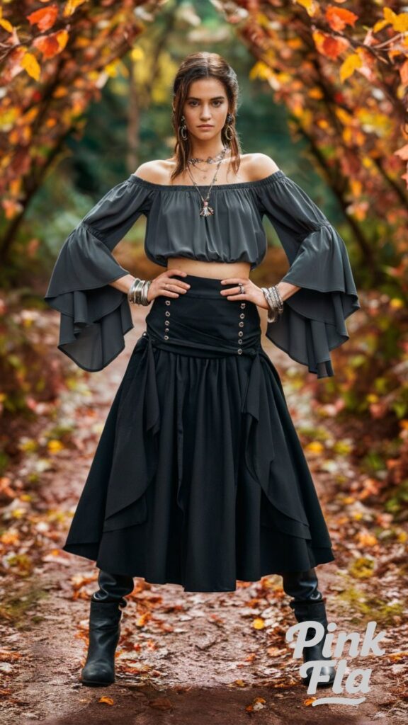 Dark boho outfits bring together the laid-back vibe of bohemian style with a more polished, elegant edge. These looks use deep shades, luxurious fabrics, and eye-catching accessories to stand out.