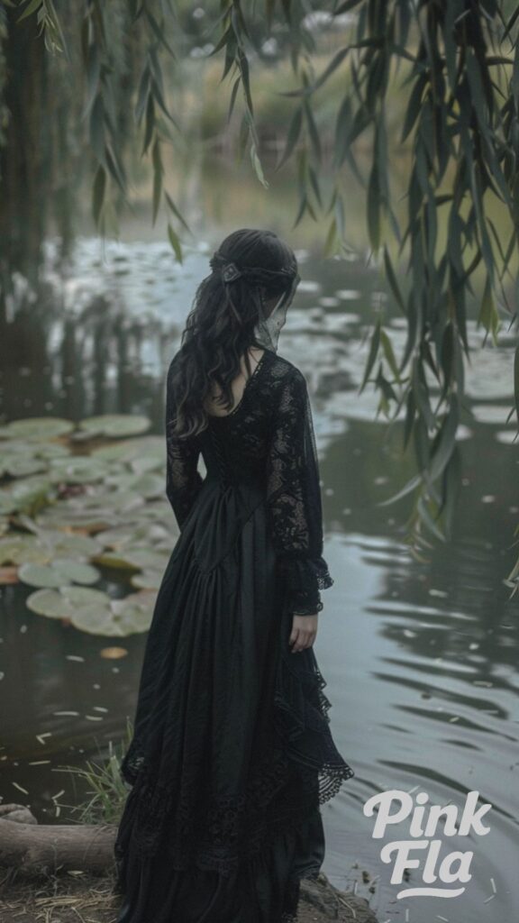 A lace dress with a soft, flowing skirt and fine details creates a beautifully haunting aesthetic, perfect for a gothic-style look.