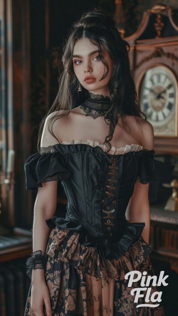 For accessories, think statement pieces—like a pair of steampunk goggles perched on your head or a gear-inspired necklace resting at your collarbone. It’s the perfect outfit for festivals, cosplay events, or a creative night out with friends. Pair it with lace-up boots and fingerless gloves to complete the fantasy. Whether you’re exploring an art market or dancing under string lights, this look is bound to draw curious glances and compliments.