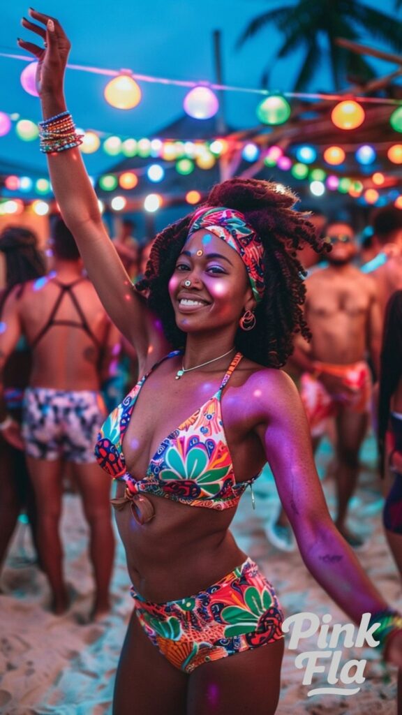 It’s exciting, full of personality, and just right for a night spent celebrating by the ocean. This outfit ensures you’ll be the life of the party, radiating confidence and tropical charm.