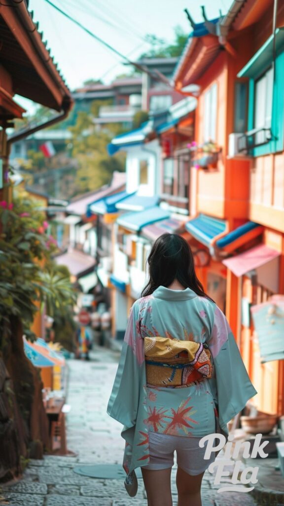 Visiting cultural spots and eager to immerse yourself in local traditions? A kimono-style robe worn elegantly over shorts is both beautifully eye-catching and wonderfully practical. The robe’s bright colors and detailed designs make it truly stand out, while the shorts underneath keep you comfortable for hours of exploring.