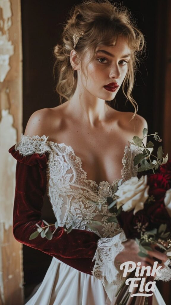 Ideal for brides who want a traditional look with a dark, romantic edge for their vampire-themed wedding.