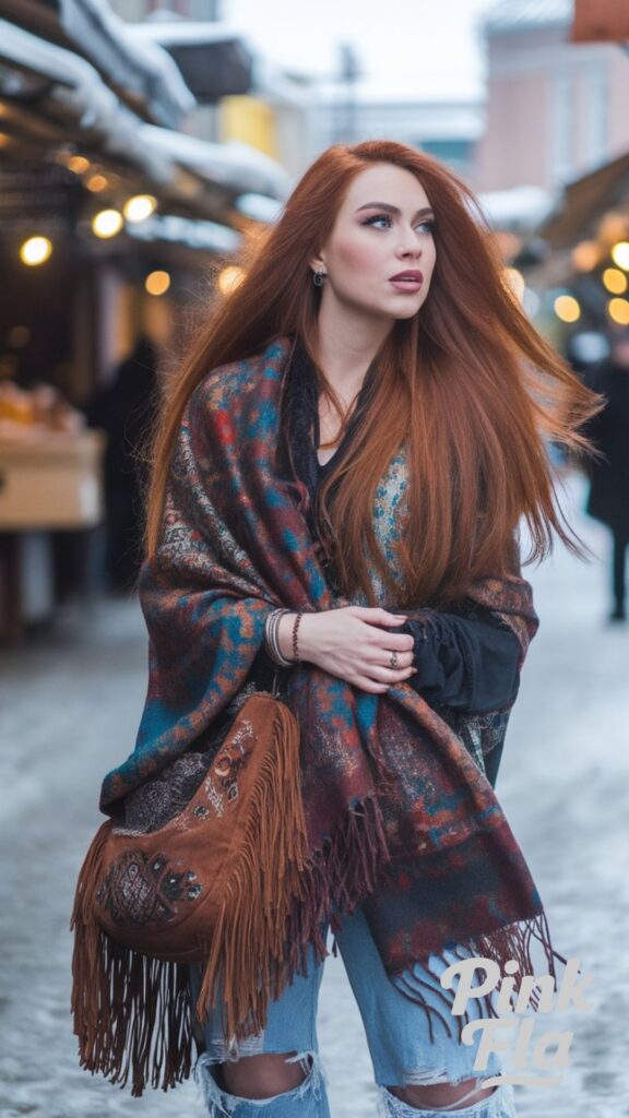 5. Boho Winter Style with a Fringed Shawl