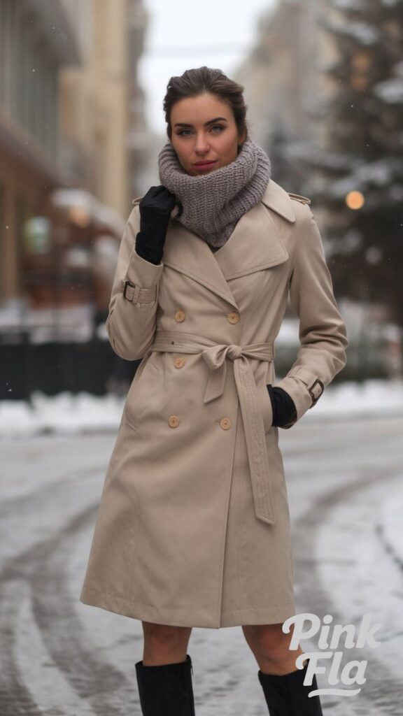 13. Timeless Winter Style with a Trench Coat and Scarf