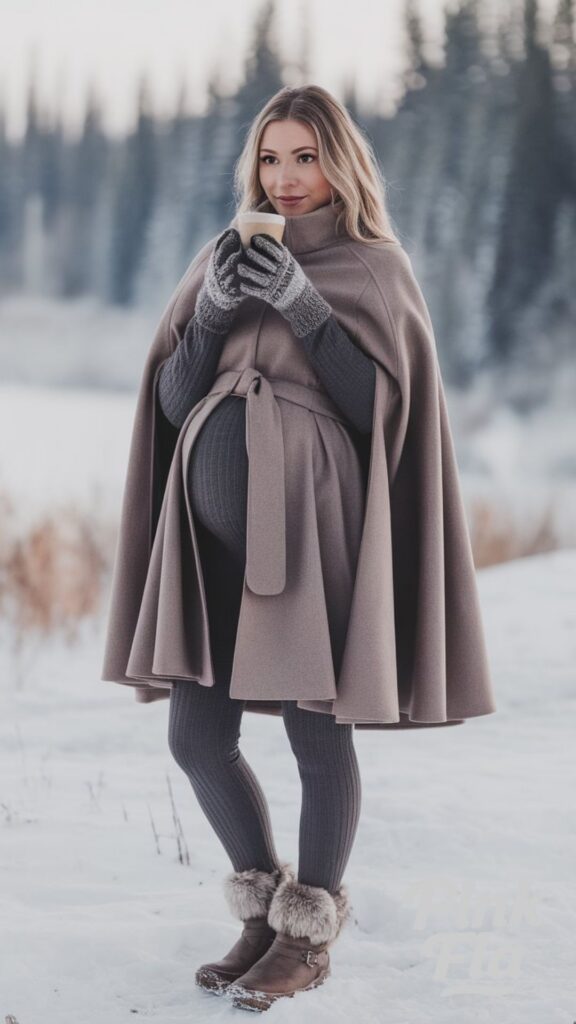 From soft knits and layered ponchos to elegant, bump-friendly coats, these outfits will help you feel confident, comfortable, and stylish all season long.