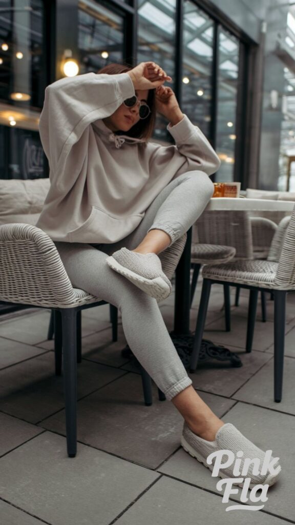 This outfit is all about comfort, but make it cute. The oversized hoodie feels like a warm hug—relaxed, cozy, and just right for lazy mornings or casual outings. Paired with soft gray leggings, the look is effortlessly laid-back but still pulled together enough to wear outside the house.