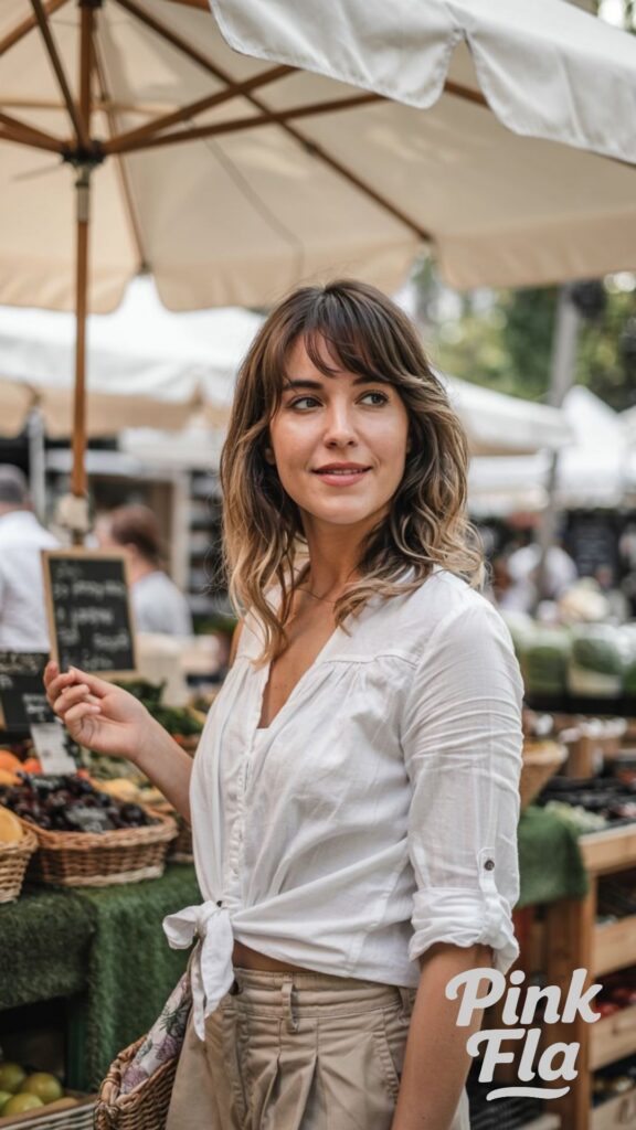 This look is ideal for Saturday plans that might include errands, a park visit, or lunch outdoors. Slip on some flat sandals or white sneakers, and you’ve got structure, comfort, and style all in one lighthearted package.