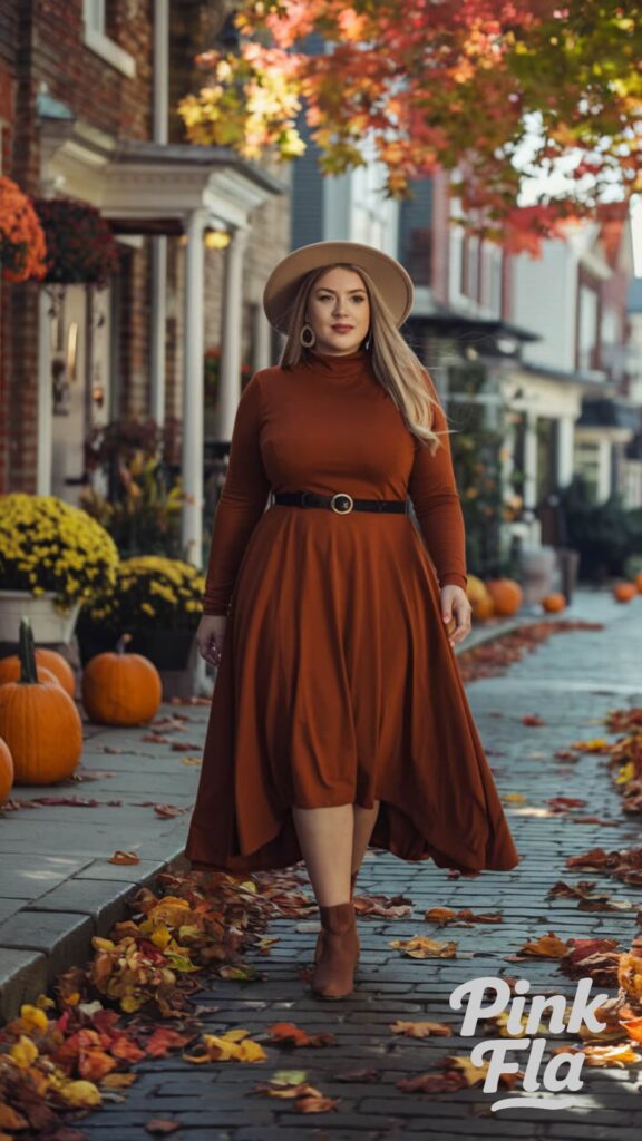 Add versatile suede ankle boots and a stylish wide-brim hat for the perfect seasonal touch. This ensemble is great for a fall fair, a leisurely walk among the colorful leaves, or any autumn event where you want to make a bold, elegant statement.